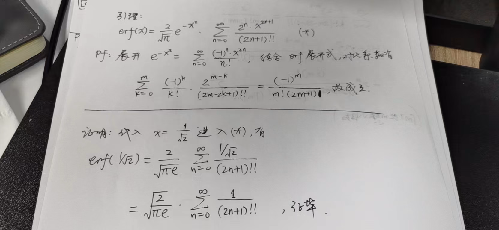 我一看上面那个式子觉得好熟悉啊……这个式子看起来可以用来算 erf,而我之前研究的解析方法数素数中少不了要来算 erf,于是翻了翻,虽然没在 Wikipedia 找到它的证明,但是找到了 这个: