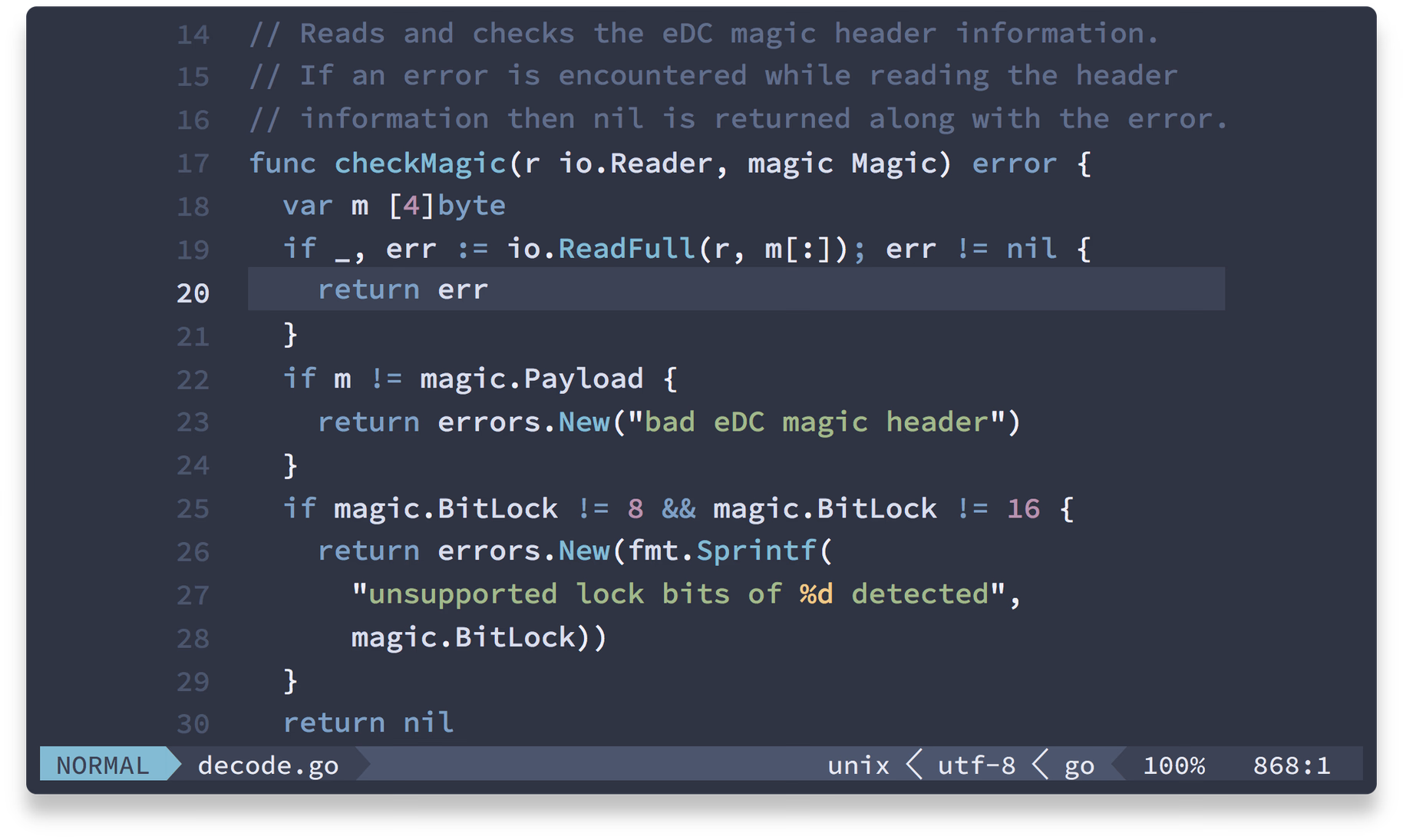 C 写的。vim 作为远古神兽,是不少人心中的信仰。但是有人吐槽 vim 的代码实在包含了太多的历史包袱,例如这里有篇吐槽文,截取了一段 400 行、包含了 40 个 #ifdef 的代码,作用是读取一个用户的输入的字符。作者还有另外一篇吐槽文,里面提到了 neovim 起源,特别适合吃瓜。这篇文章作者试图给 vim 的插件提供异步功能,这样就可以做一些比较慢的事,例如调用外部 linter。但是 vim 的 BDFL 却不同意 merge。文章中提到了有这么一个 review 意见: