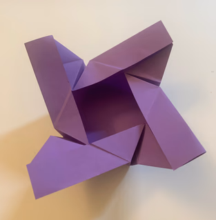 我比较喜欢纯的折纸,不用胶水(因为没有)、剪刀。但是我能接受用手来裁(例如手动把一张正方形纸分成 4 份或者去掉一个角)。折完几个作品后,我觉得 modular origami 也很有趣,就是有点累……