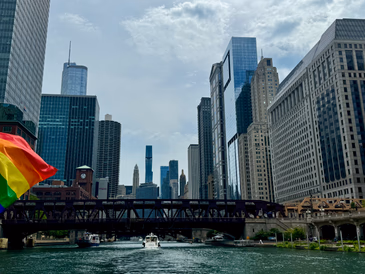早上起了个大早去坐河上的小船,真是年度坐船游戏吗 233333 不过说起来,我之前还真没坐过芝加哥的旅游小船……为啥这船上都挂着彩虹旗?这船就沿着 Riverwalk 一路开,还有个导游讲解芝加哥建筑,毕竟这是 Architecture tour. 今天温度比我想象中搞,更加不幸的是我刚好坐在了某个热风出口(我也不知道是啥)。。