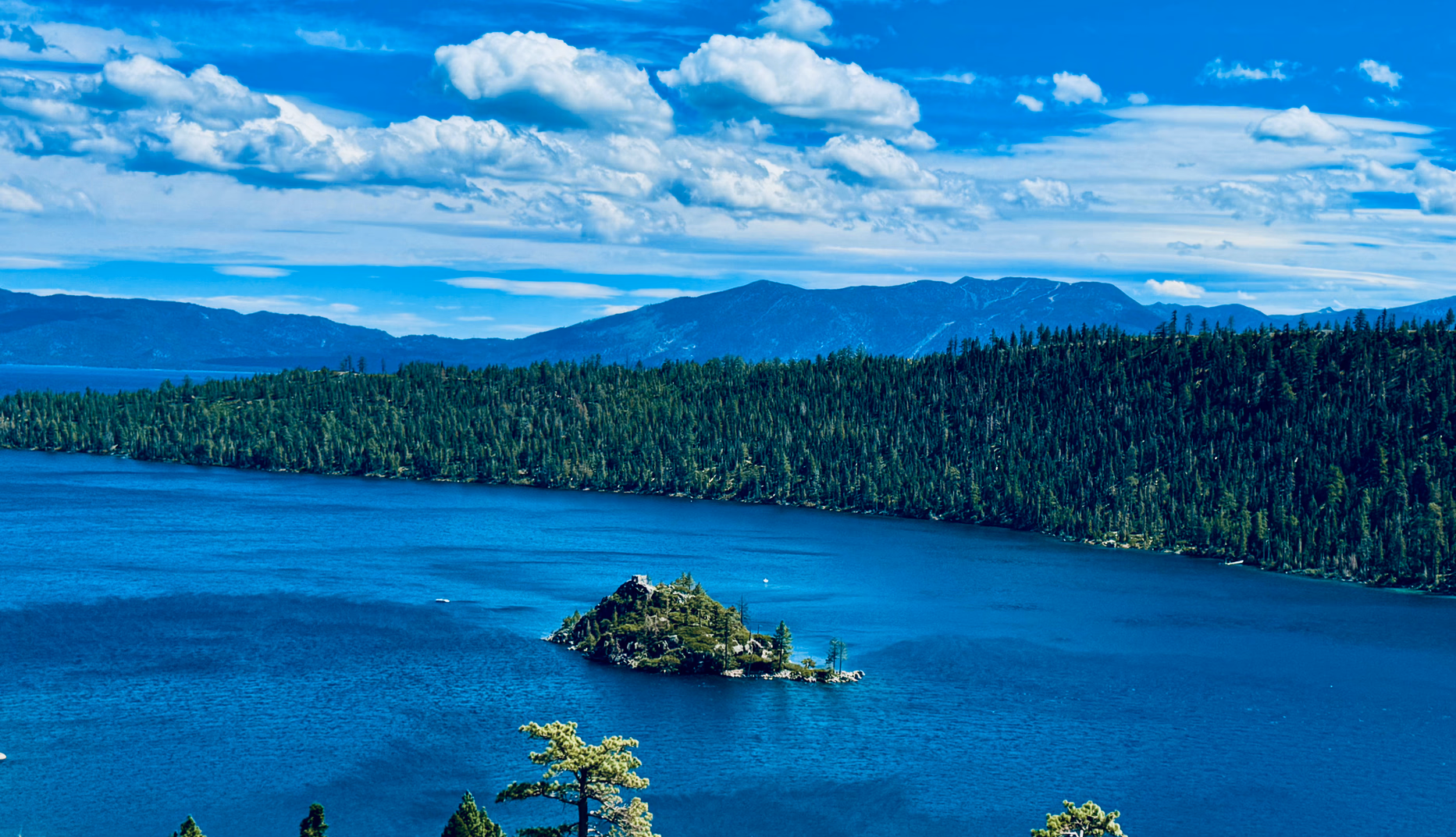 第二站是 Emerald Bay State Park。今天的风明显比昨天大,我在 Vikingsholm Trail Head 被风吹的不行了,但是这里的风景确实不错,从这里能看到 Fannette Island。理论上附近还有一个 Eagle Fall,到了之后实在让我大跌眼镜,就这???别说是 Fall 了,你说这是个 Creek 我都将信将疑……