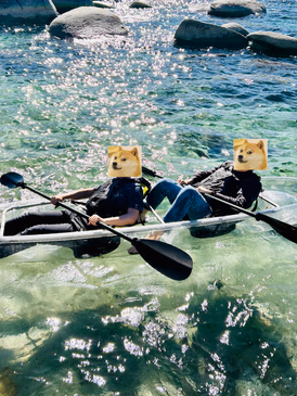 下午我们搞了个 kayak,六个人分成三组,我和胡老师一组。划之前我们又在开玩笑说会不会翻船。脸哥信心满满,这次绝对不会翻船。然而天公不作美,天气预报告诉我们下午的风不小。这次我们租的是 Tahoe 特色透明小船,因为 Tahoe 的湖水特别清澈,透明小船就会有一种悬浮的感觉。我不由想到当年的图形学大作业了,我写了一个 AMCMCPPM 算法(自适应马尔可夫链蒙特卡洛渐进式光子映射,特别适合用来装逼),里面还有一张 渲染图 ,就和我在 Tahoe 看到的一样。