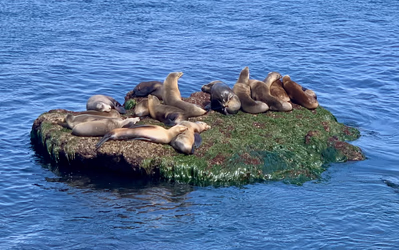 吃完饭后出去玩了一下。这次去的是 La Jolla Cove ,就在住的宾馆没多远。这里似乎没啥好看的,就是海狮多。说起来我还分不清海豹和海狮,后来发现这里立了块牌子,说呱呱叫的就是海狮,海豹要安静得多。这里的海狮不咋怕人,我本来只想拍远处的一群海狮,结果发现就在我一米处就有一只海狮在晒太阳。